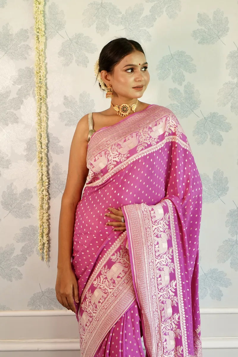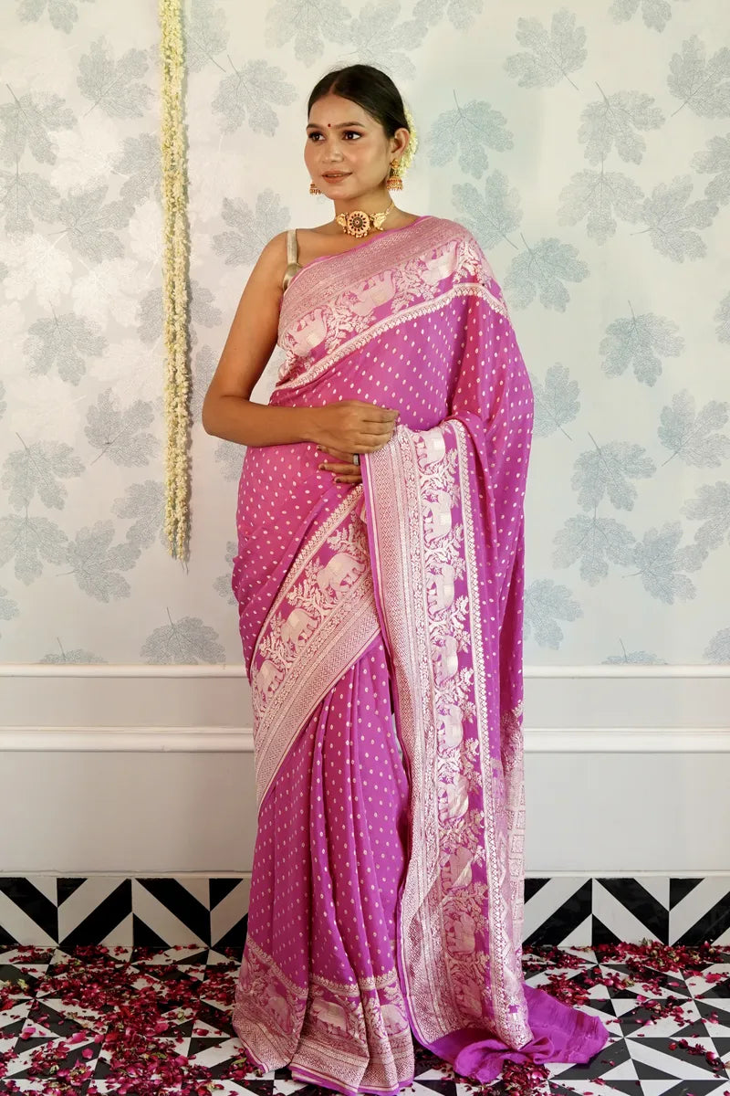 ROYAL PINK KHADDI GEORGETTE SAREE WITH INTRICATE ZARI WEAVES