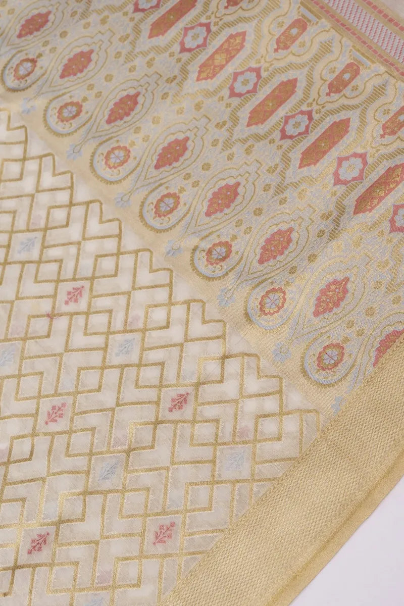 Dupatta Fabric Pure Banarasi Chanderi Silk | Dupatta Length : 2.5 Mtr | Dupatta Color : Off White | Dupatta Work : Meenakari Resham Booti With Golden Zari Jaal