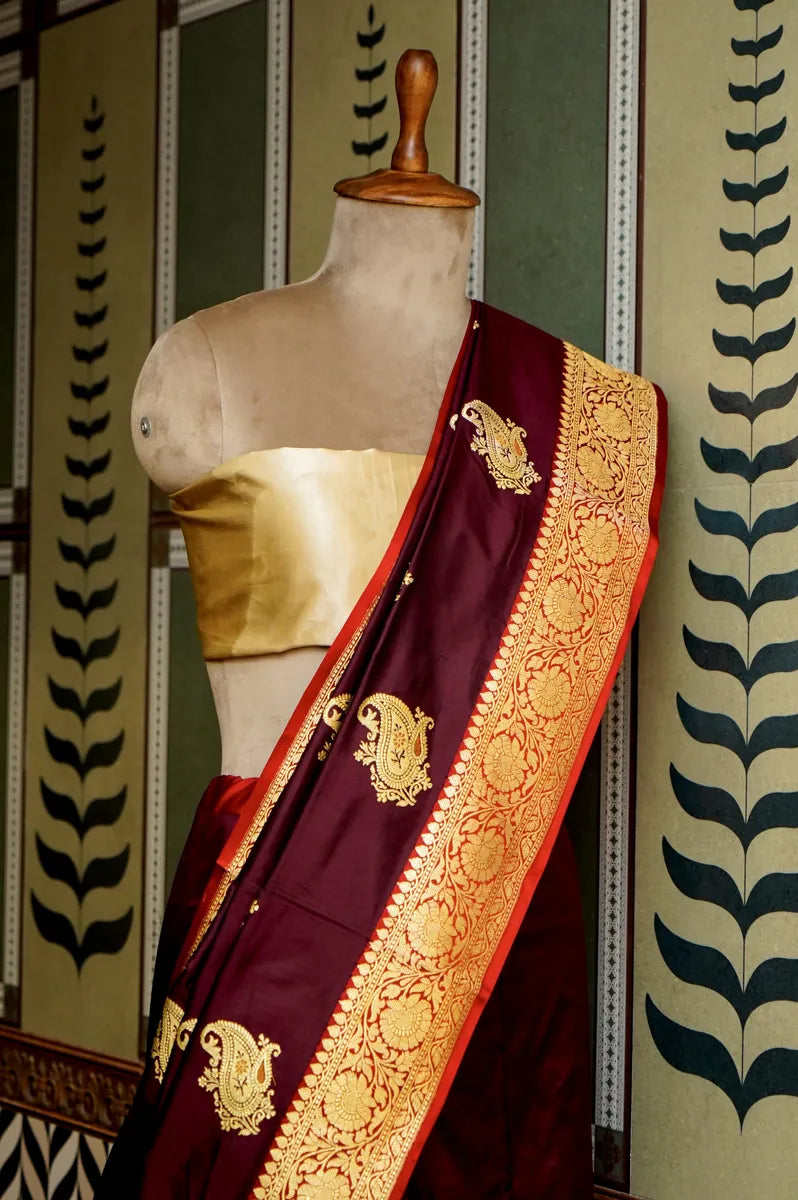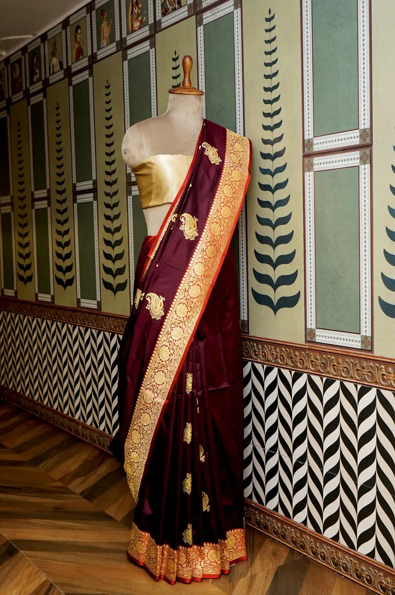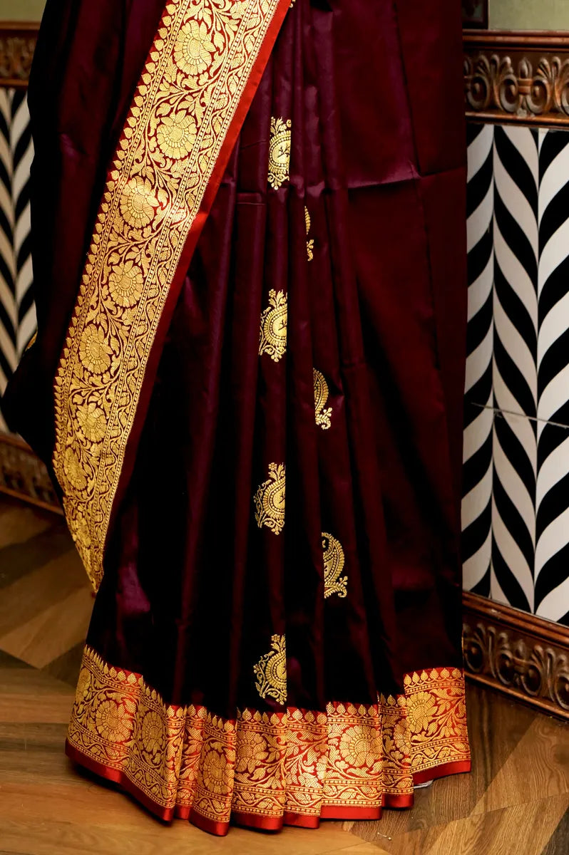 PURE BANARASI COFFEE RED SINGLE KATAN SILK SAREE