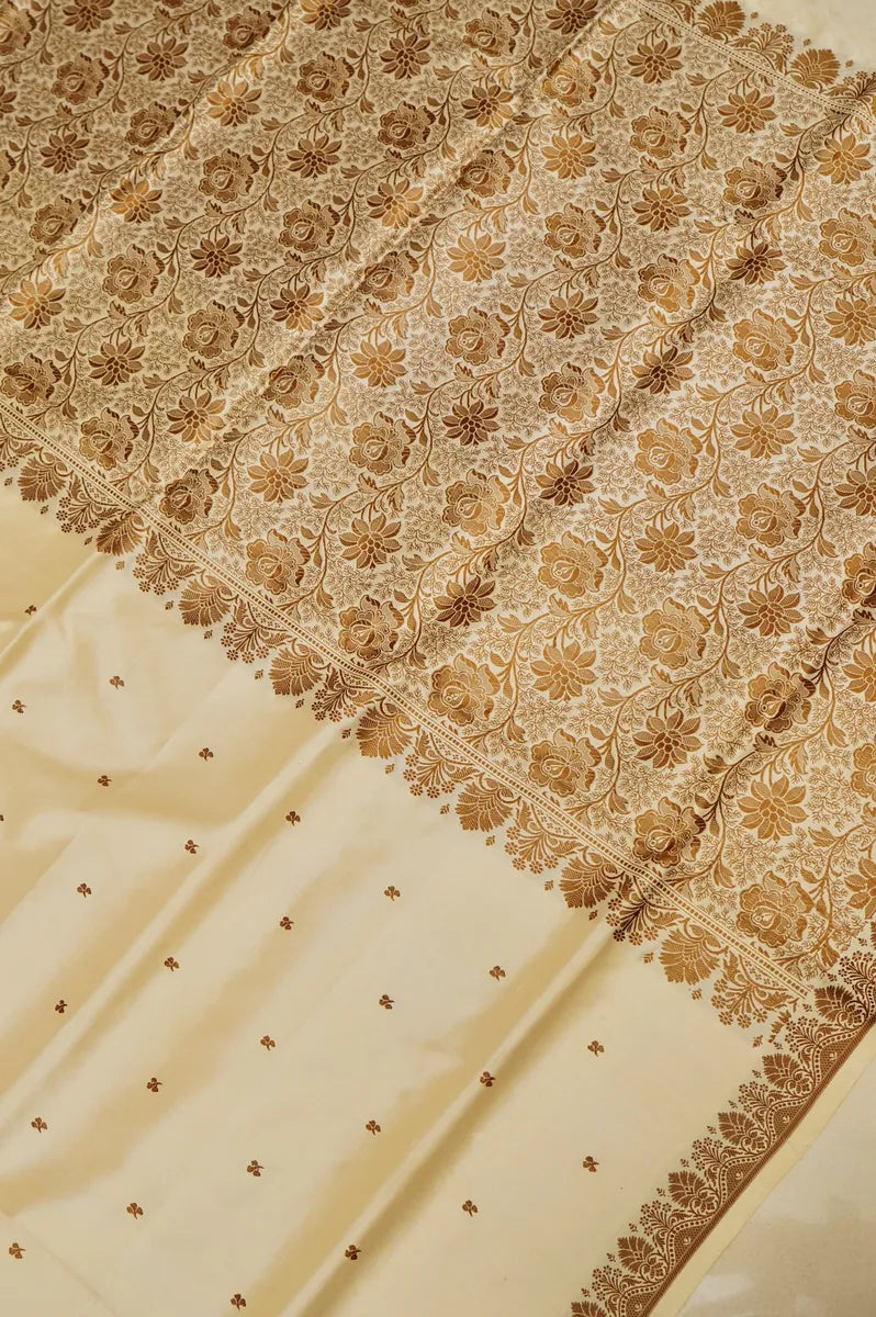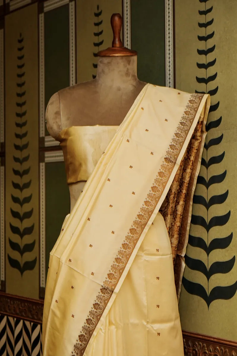 PURE BANARASI CREAM SINGLE KATAN SILK SAREE
