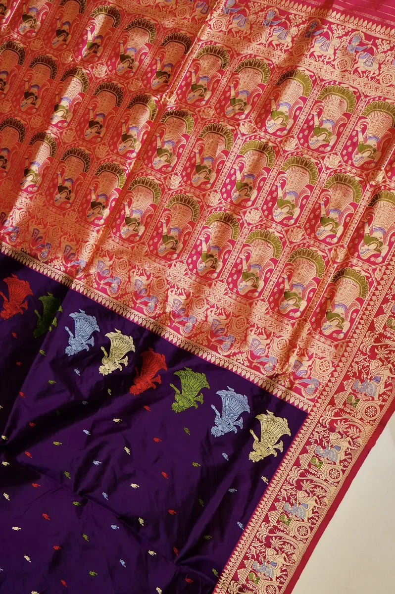 PURE BANARASI MAGENTA SINGLE KATAN SILK SAREE