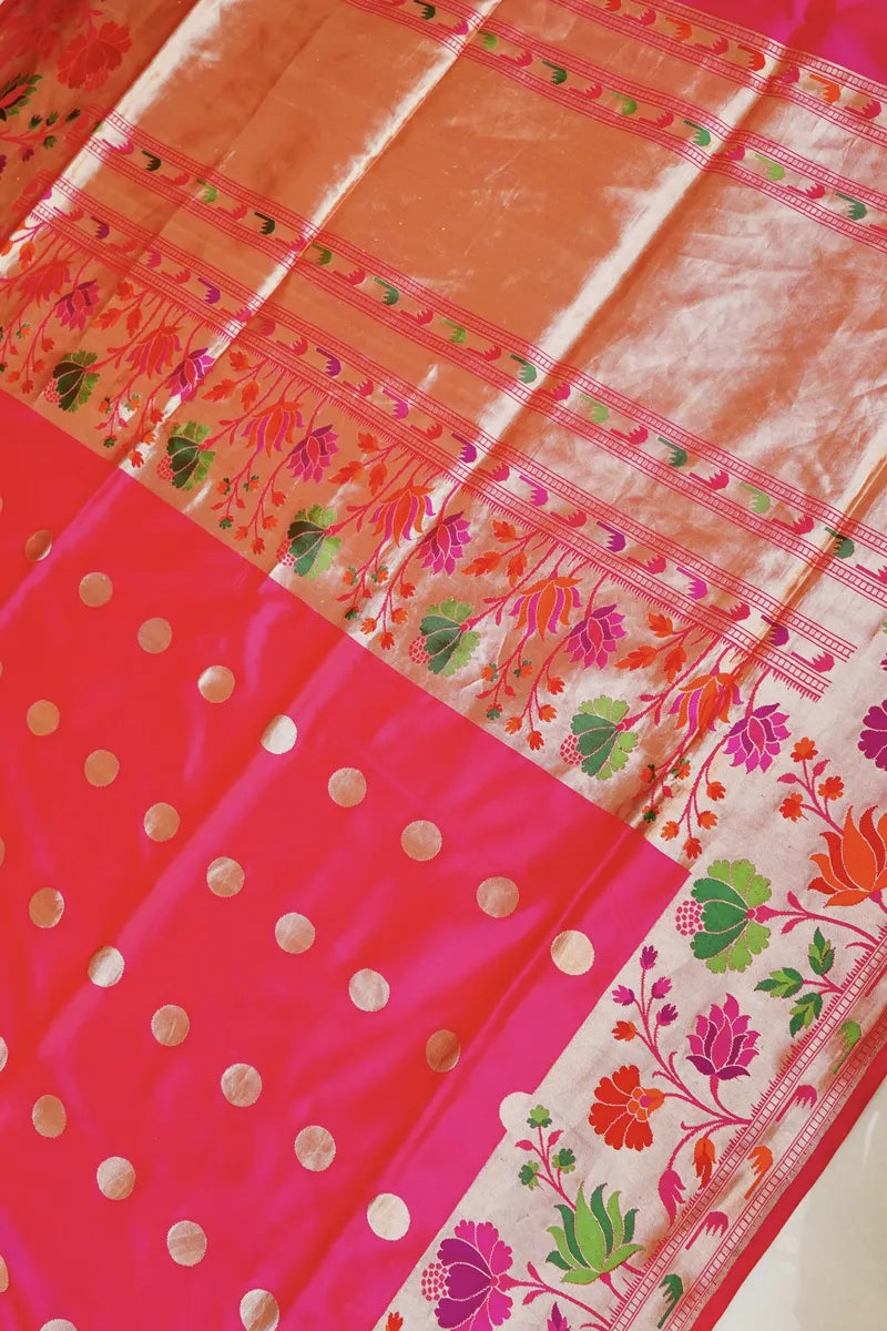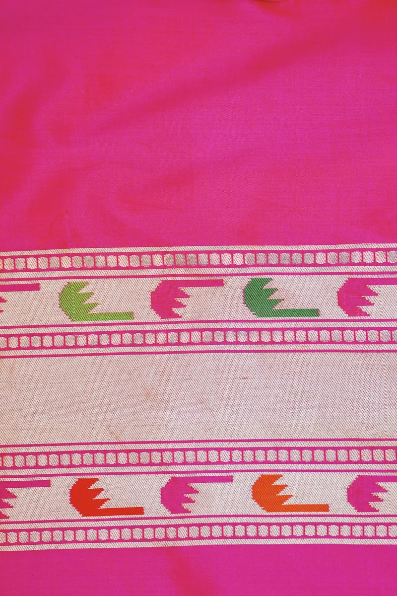 Saree Details : Saree Fabric : Pure Banarasi Single Katan Silk | Blouse Fabric : Pure Banarasi Single Katan Silk | Saree Work : Golden Zari Booti With Meenakari Border | Blouse Work : Golden Zari Border Plain | Saree Color : Rani Pink | Blouse Color : Rani Pink