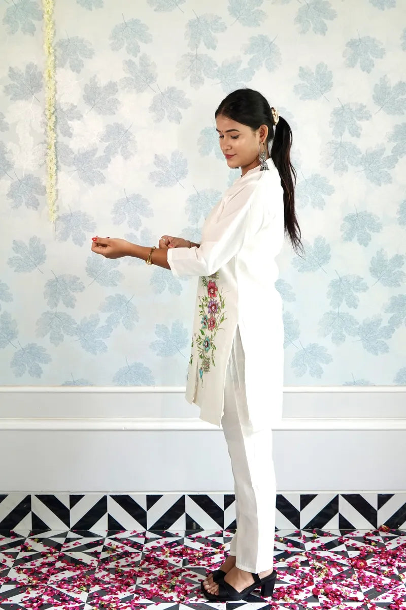PURE BLOOM: WHITE COTTON SET WITH FLORAL MOTIFS