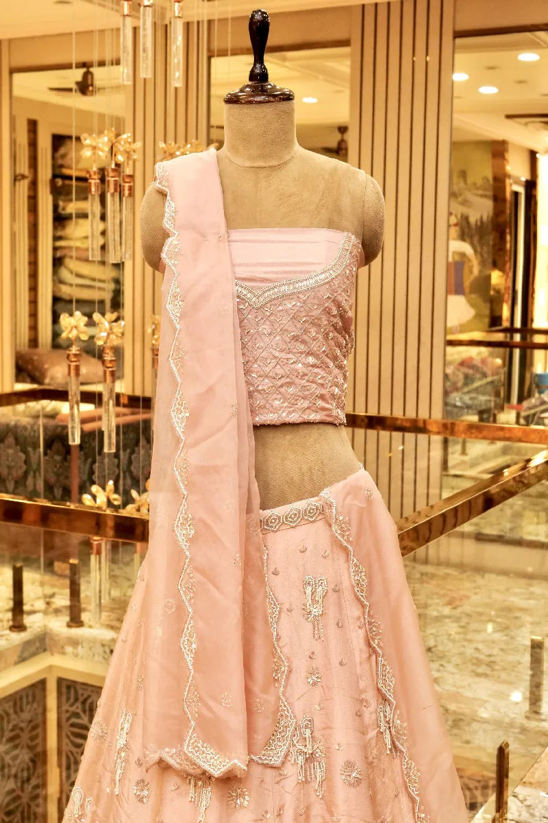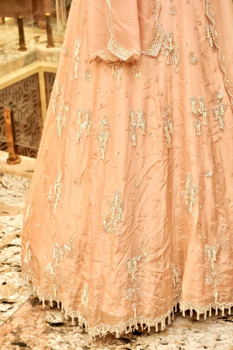 PURE CREPE PEACH COLOR PARTY WEAR LEHENGA