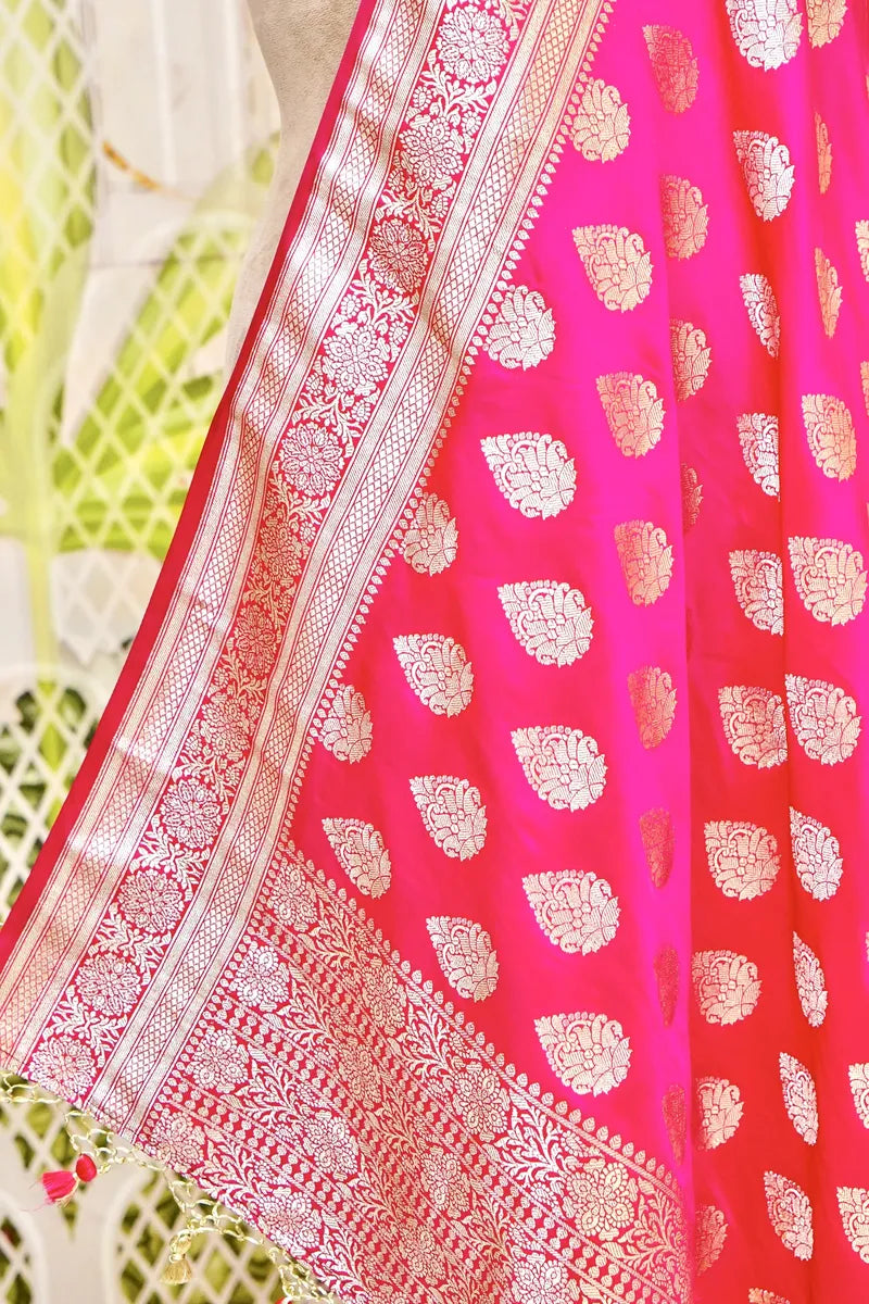 PURE HANDLOOM RANI COLOR BANARASI KATAN SILK DUPATTA