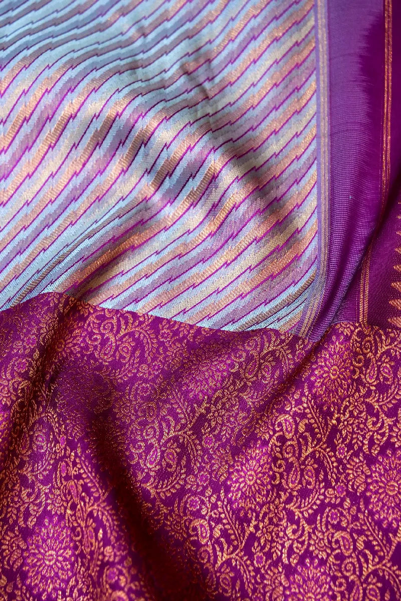 PURE HANDLOOM REAL ZARI AQUA GREEN WITH CONTRAST MAGENTA COLOR KANCHIPURAM SILK SAREE