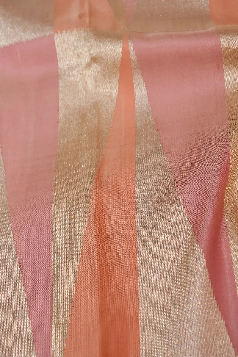 PURE HANDLOOM REAL ZARI LIGHT PEACH COLOR KANCHIPURAM SILK SAREE