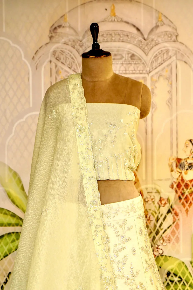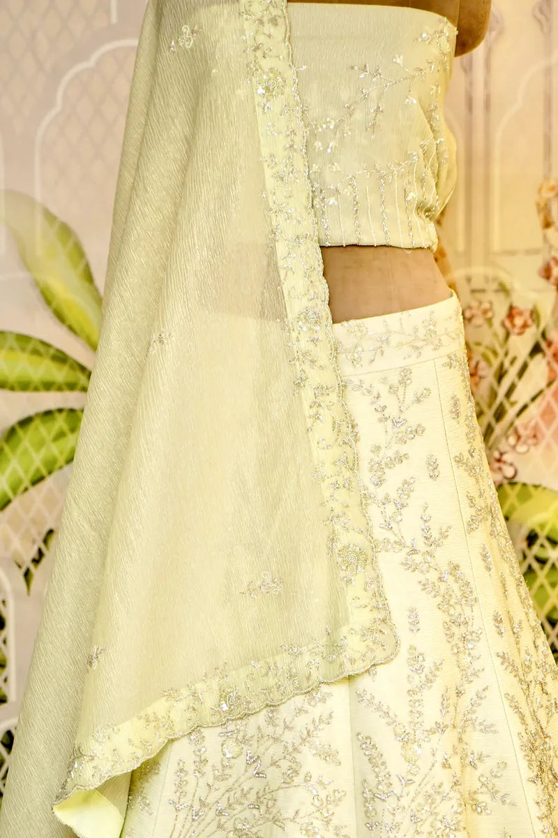 PURE ORGANZA PISTA GREEN COLOR PARTY WEAR LEHENGA