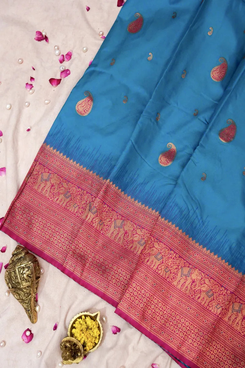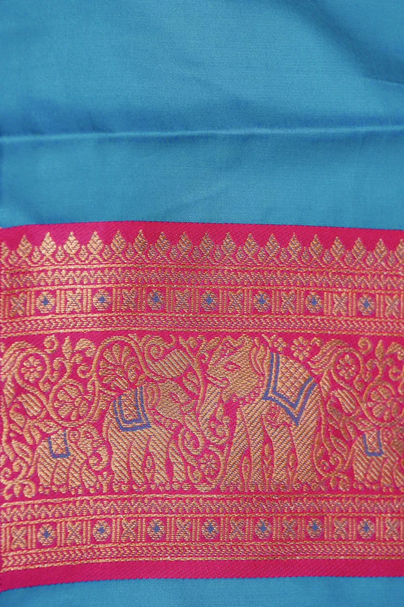 RAMA GREEN BANARASI SILK SAREE WITH PINK BORDER