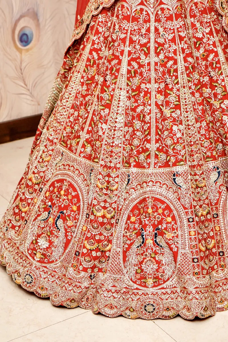 RED COLOR FULL HAND ZARDOSI WORK BRIDAL LEHENGA