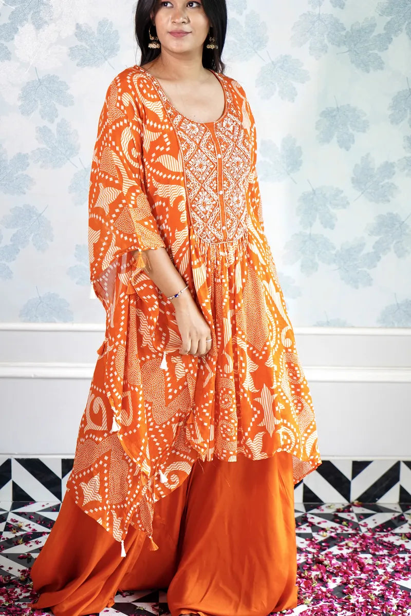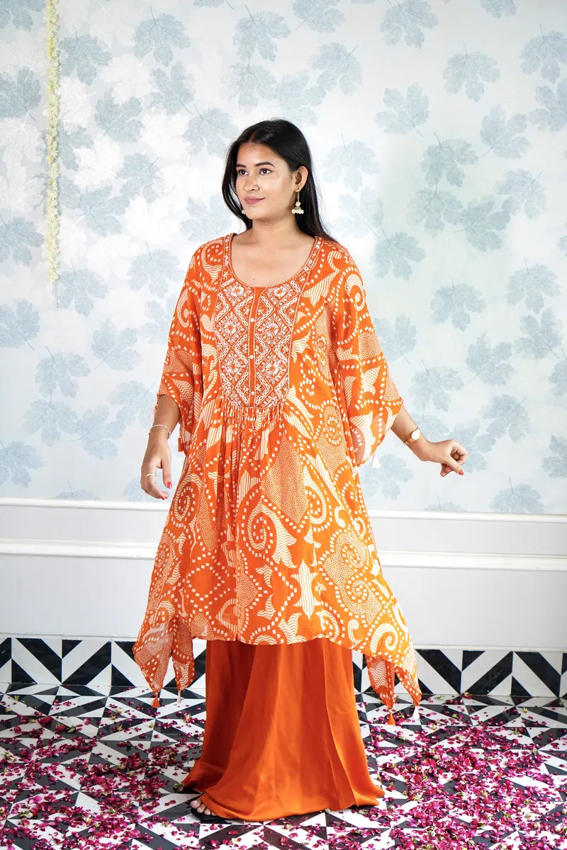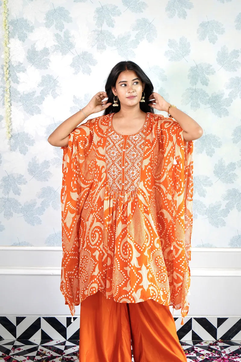 "SUNSET GLOW: BOHO PRINT ORANGE KAFTAN SET"