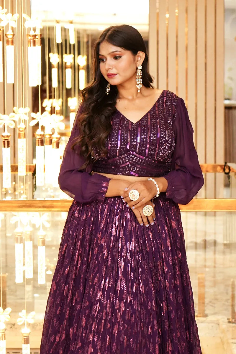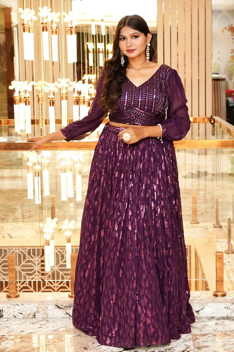 WINE COLOR TWO PIECES CROP TOP INDO-WESTERN